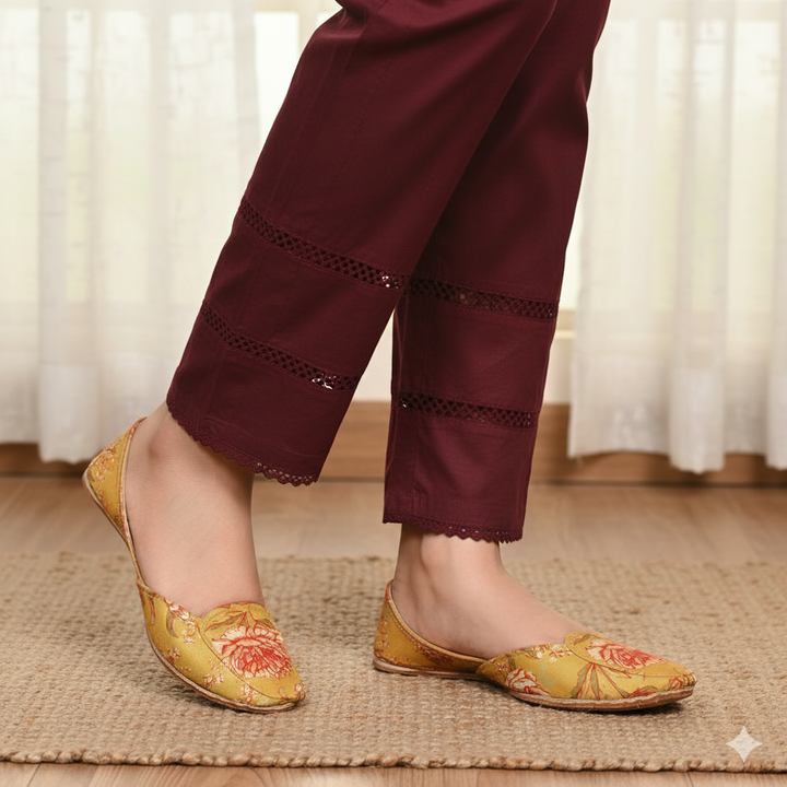 - Upper: The upper is made of swiss lawn with beautiful print, giving it a luxurious and traditional look