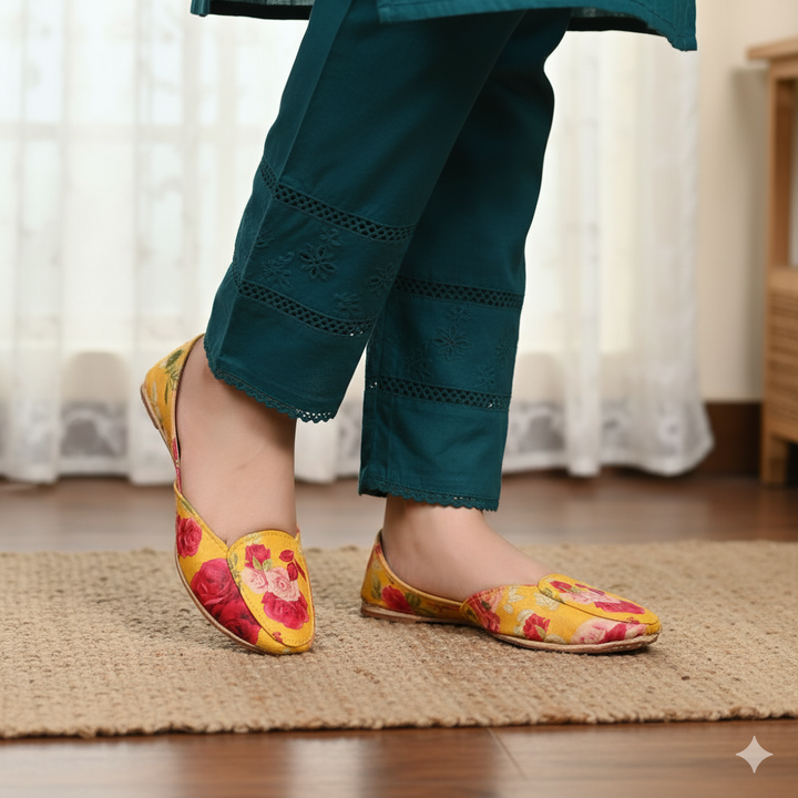 - Upper: The upper is made of swiss lawn with beautiful print, giving it a luxurious and traditional look