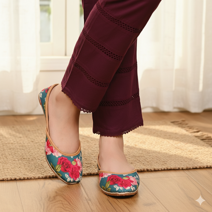 - Upper: The upper is made of swiss lawn with beautiful print, giving it a luxurious and traditional look