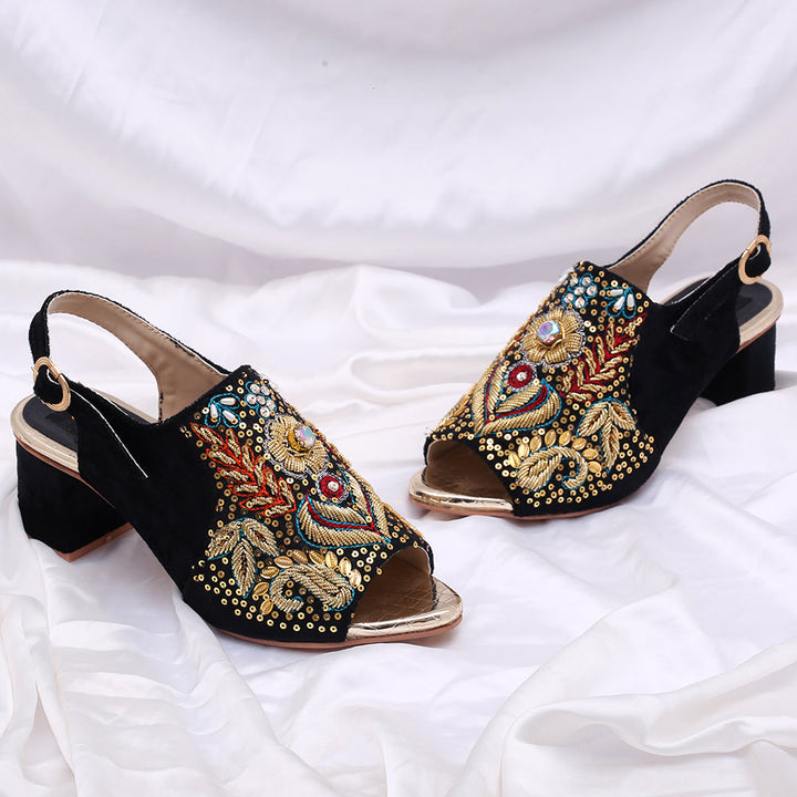 The Sandal-Q2-Black is an exquisite representation of traditional craftsmanship and modern elegance. Handcrafted with meticulous attention to detail, this women’s sandal captures the essence of Pakistan's vintage footwear culture while incorporating contemporary design elements. Made from high-quality material, the sandal features intricate embroidery and embellishments that showcase the rich cultural heritage of Pakistan. With its comfortable sole and adjustable straps, the Sandal-Q2-Black seamlessly blends tradition and comfort, making it a perfect choice for both casual outings and special occasions.